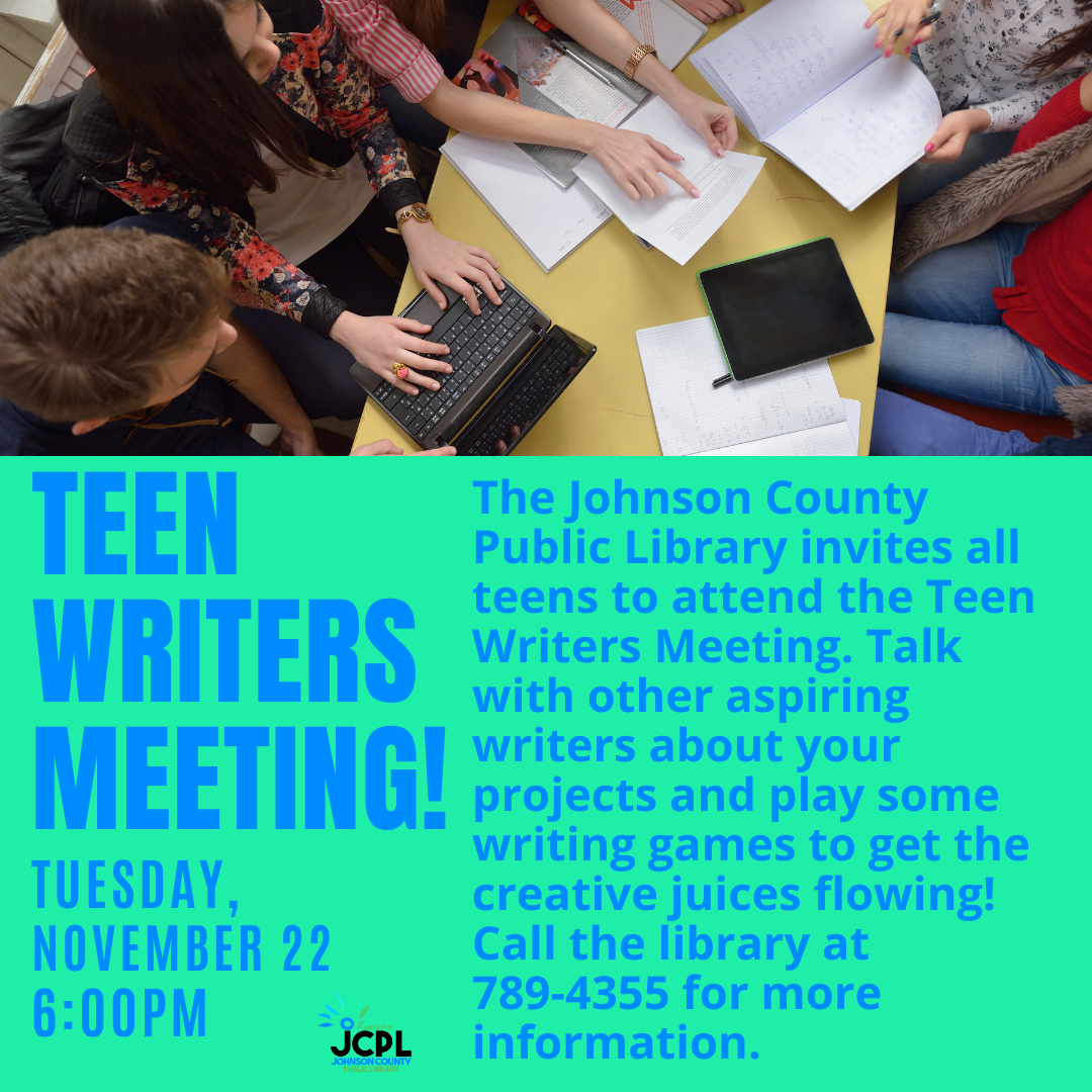 Talk with other aspiring teen writers about your projects and play some writing games to get the creative juices flowing! Call the library at 789-4355 for more information.